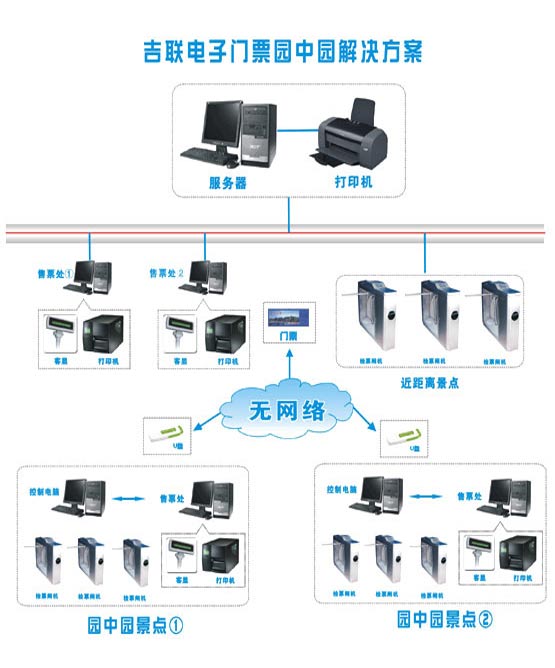 目前很多景区、特别是游乐园,存在多点分别计费模式即园中园收费方式,吉联公司结合多年景区票